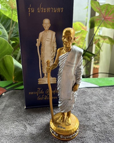 พระบูชา หลวงปู่โต๊ะ วัดถ้ำสิงโตทอง รุ่น ประทานพร ขนาดสูง ๘ นิ้ว เนื้อโลหะสีแร่ หมายเลข ๒๒๑ กล่องเดิม