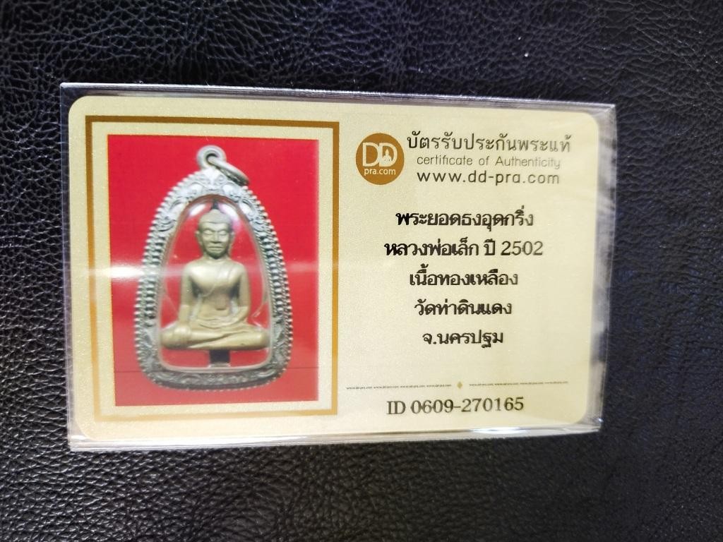 3500.- พระมีบัตร พระยอดธงอุดกริ่ง หลวงพ่อเล็ก วัดหนองดินแดง นครปฐม รุ่นแรก 2502 พิมพ์หน้ายักษ์ (นิยม) เลี่ยมเงินสั่่งทำ+บัตรดีดี