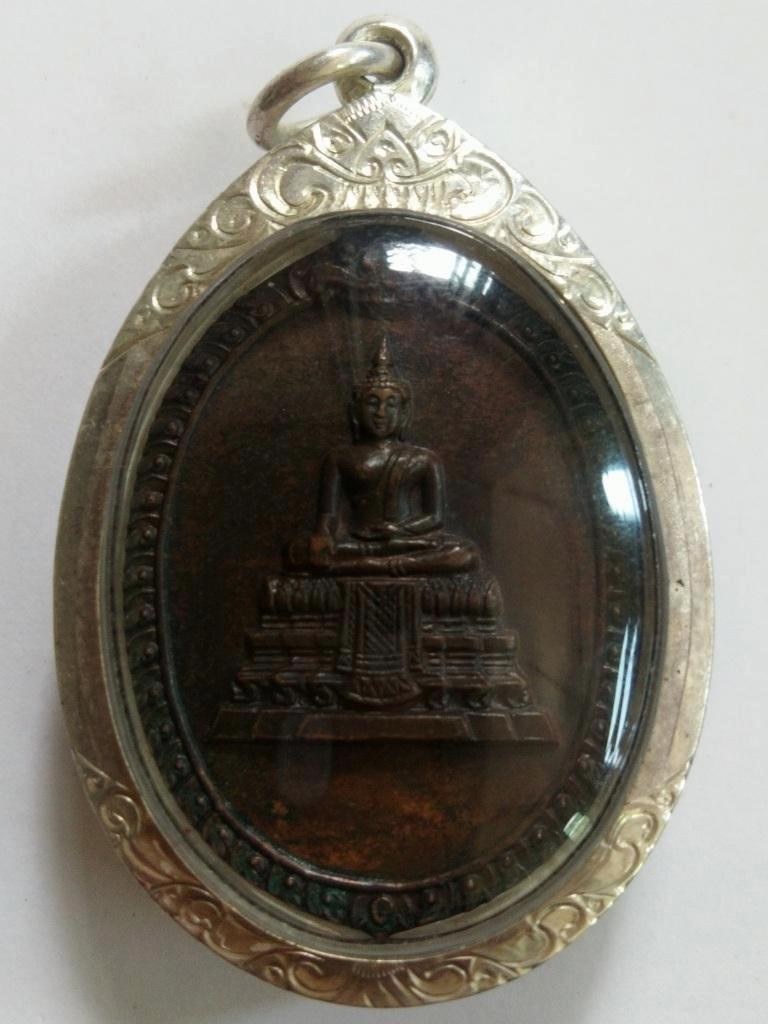 1500.-เหรียญหลวงพ่อวัดไร่ขิง จ.นครปฐม ปี18 เนื้อทองแดง เลี่ยมกรอบเงิน