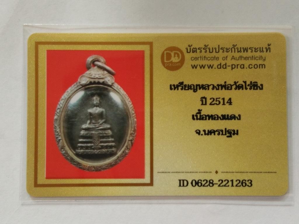 2500.-เหรียญหลวงพ่อวัดไร่ขิง ปี14 จ.นครปฐม เนื้อทองแดง เลี่ยมเงิน + บัตรดีดี
