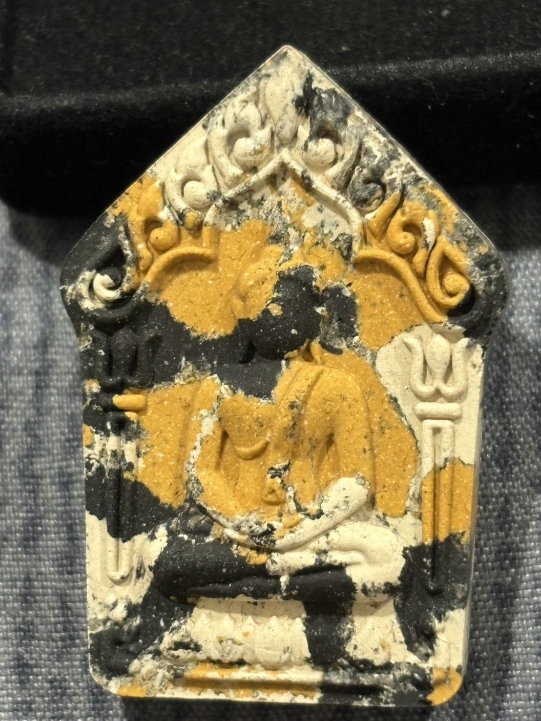 พระขุนแผนผงพรายกุมาร รุ่นแรก หลวงพ่อสมหวัง สำนักสงฆ์สวนป่าสมุนไพร ระยอง หลังฝังตะกรุดทองคำ 1 ดอก หมายเลข  32 พร้อมกล่องเดิม