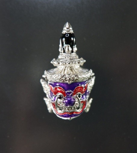 เศียรพ่อท้าวเวสสุวรรณบันดาลทรัพย์ หลวงพ่อพัฒน์ วัดห้วยด้วน จ.นครสวรรค์ เนื้อซิลเวอร์พลัส ลงยาสีม่วง พร้อมกล่องเดิมจากวัดสวยครับ