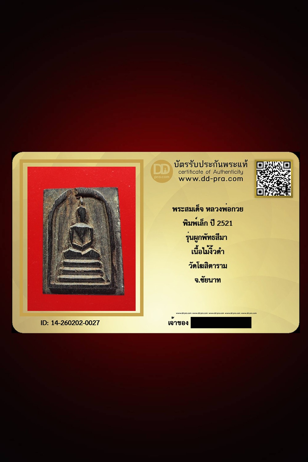 ---- วัดใจ 40 บาท John-Connor จัดให้ -- พระสมเด็จ หลวงพ่อกวย รุ่นผูกพัทธสีมา ปี 2521 เนื้อไม้งิ้วดำ วัดโฆสิตาราม จ.ชัยนาท + บัตรรับรอง สวยงาม รับพระประแท้