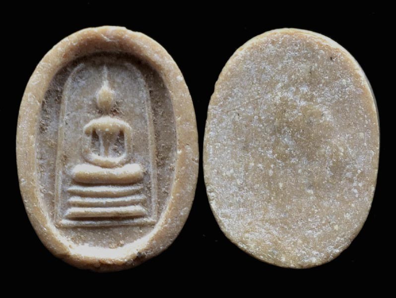 .. พระผงรุ่นแรก ยุคแรกในนามวัดโคกเขมา นครปฐม พิมพ์สมเด็จฯจันทร์ลอย มีสร้างทั้งแบบหลังรูปเหมือน หลังยันต์ หลังเรียบ พิมพ์ด้านหน้าเหมือนกันทั้งหมด .. องค์นี้หลังเรียบ เนื้อผงพุทธคุณแก่น้ำมัน