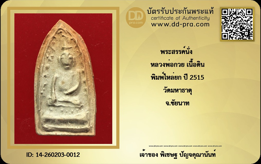 หลวงพ่อกวย เนื้อดิน พิมพ์ไหล่ยก ปี 2515 วัดมหาธาตุ จ.ชัยนาท