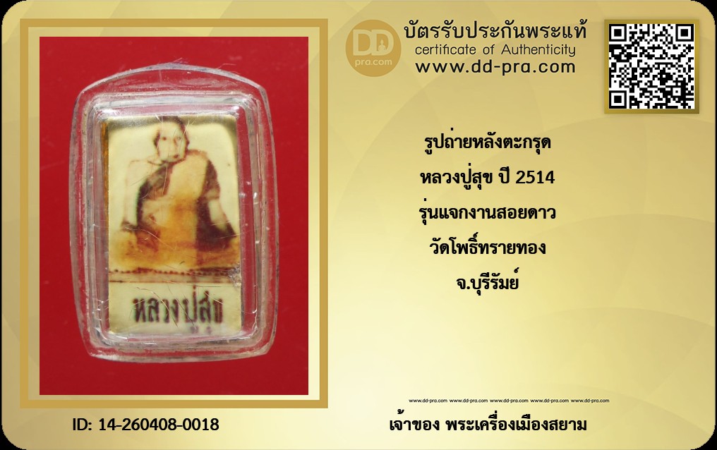 หลวงปู่สุข ปี 2514 รุ่นแจกงานสอยดาว วัดโพธิ์ทรายทอง จ.บุรีรัมย์