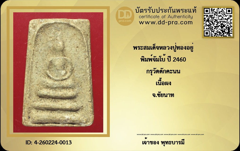พิมพ์จัมโบ้ ปี 2460 กรุวัดดักคะนน เนื้อผง จ.ชัยนาท