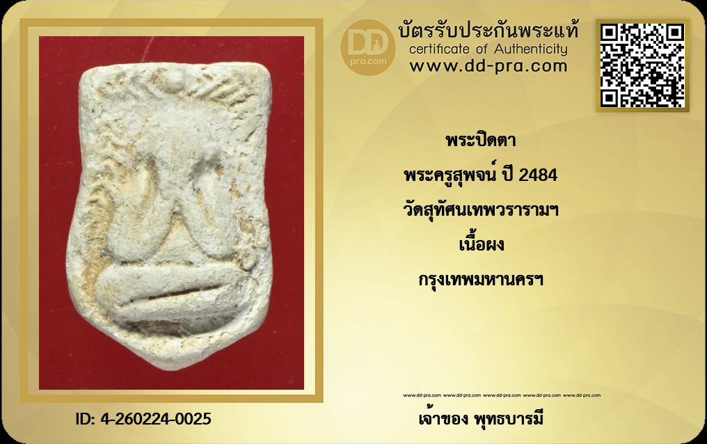 พระครูสุพจน์ ปี 2484 วัดสุทัศนเทพวรารามฯ เนื้อผง กรุงเทพมหานครฯ