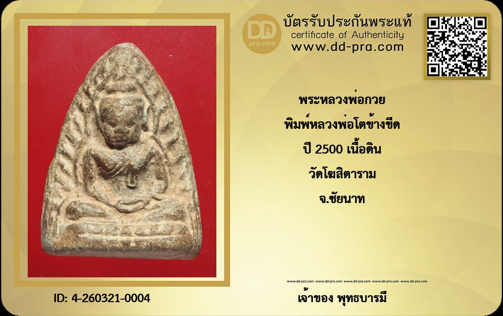 พิมพ์หลวงพ่อโตข้างขีด ปี 2500 เนื้อดิน วัดโฆสิตาราม จ.ชัยนาท
