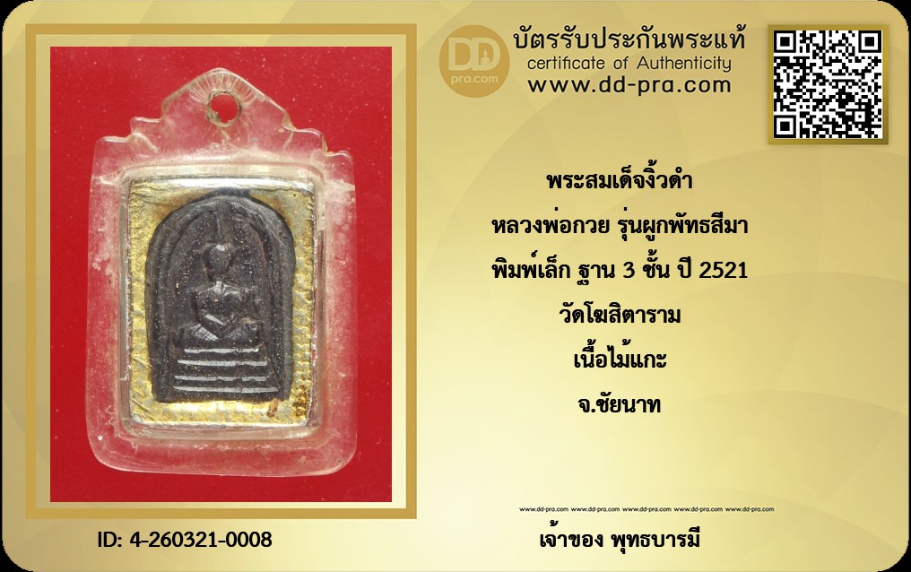 หลวงพ่อกวย รุ่นผูกพัทธสีมา พิมพ์เล็ก ฐาน 3 ชั้น ปี 2521 วัดโฆสิตาราม เนื้อไม้แกะ