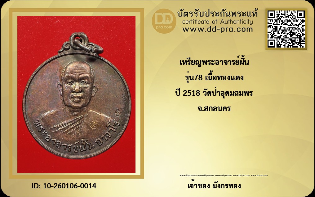 รุ่น78 เนื้อทองเเดง ปี 2518 วัดป่าอุดมสมพร จ.สกลนคร