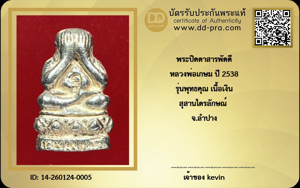 หลวงพ่อเกษม ปี 2538 รุ่นพุทธคุณ เนื้อเงิน สุสานไตรลักษณ์ จ.ลำปาง