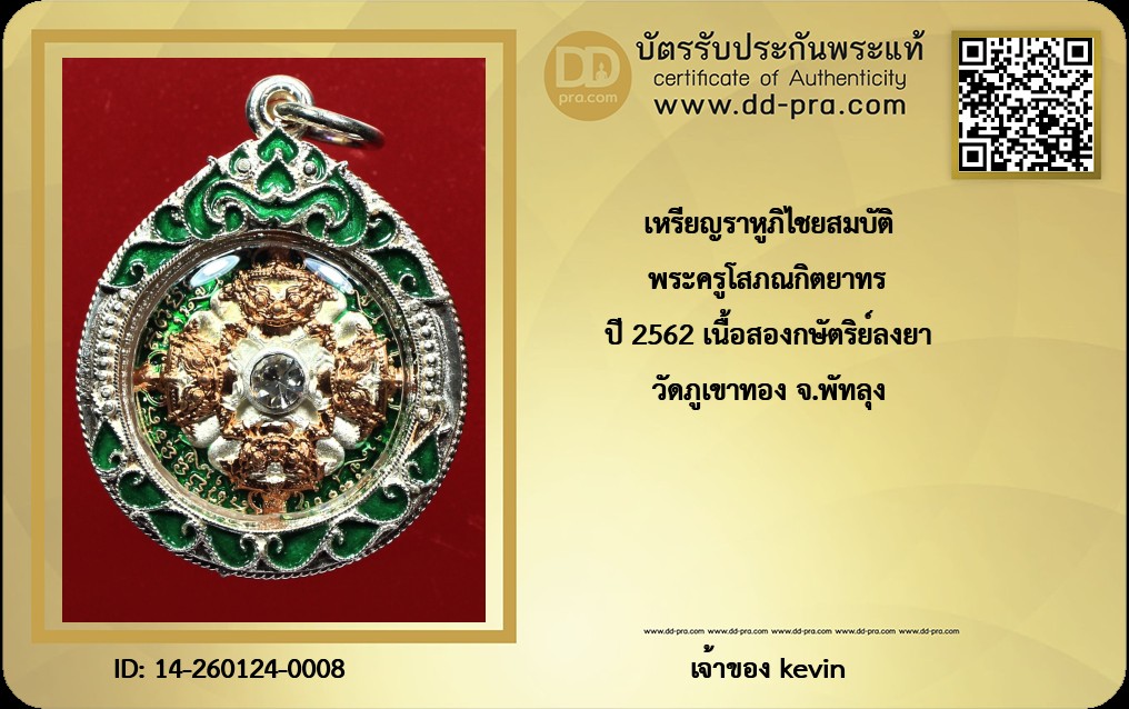 พระครูโสภณกิตยาทร ปี 2562 เนื้อสองกษัตริย์ลงยา วัดภูเขาทอง จ.พัทลุง