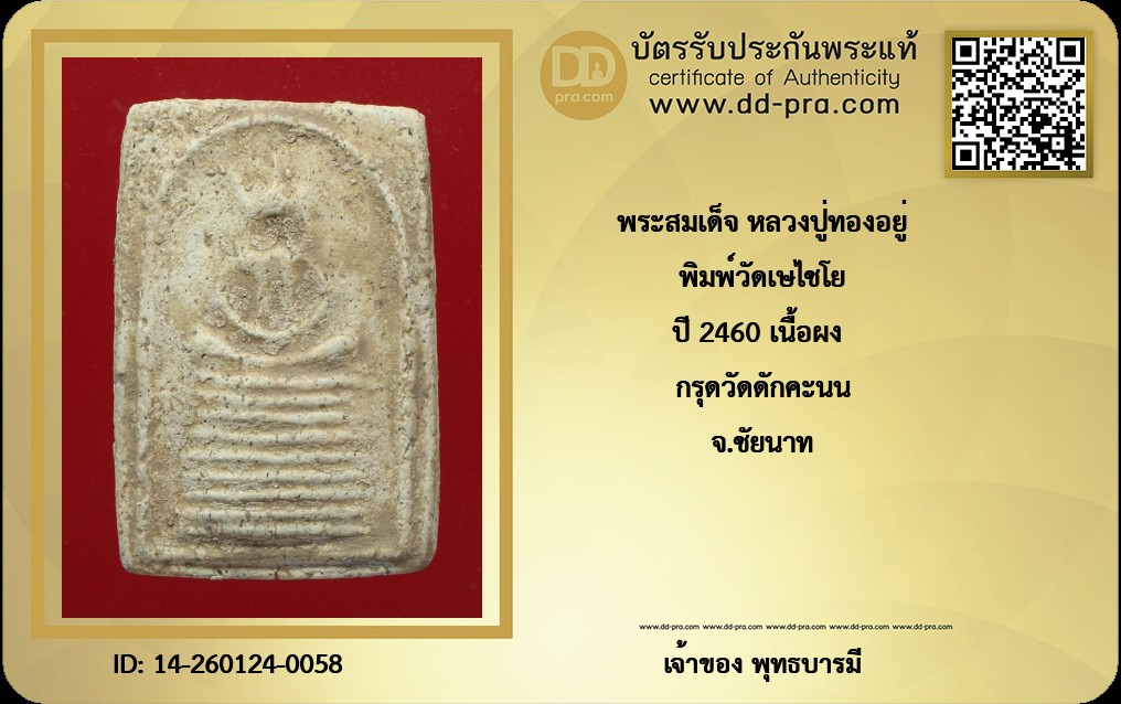 พิมพ์วัดเษไชโย ปี 2460 เนื้อผง กรุดวัดดักคะนน จ.ชัยนาท