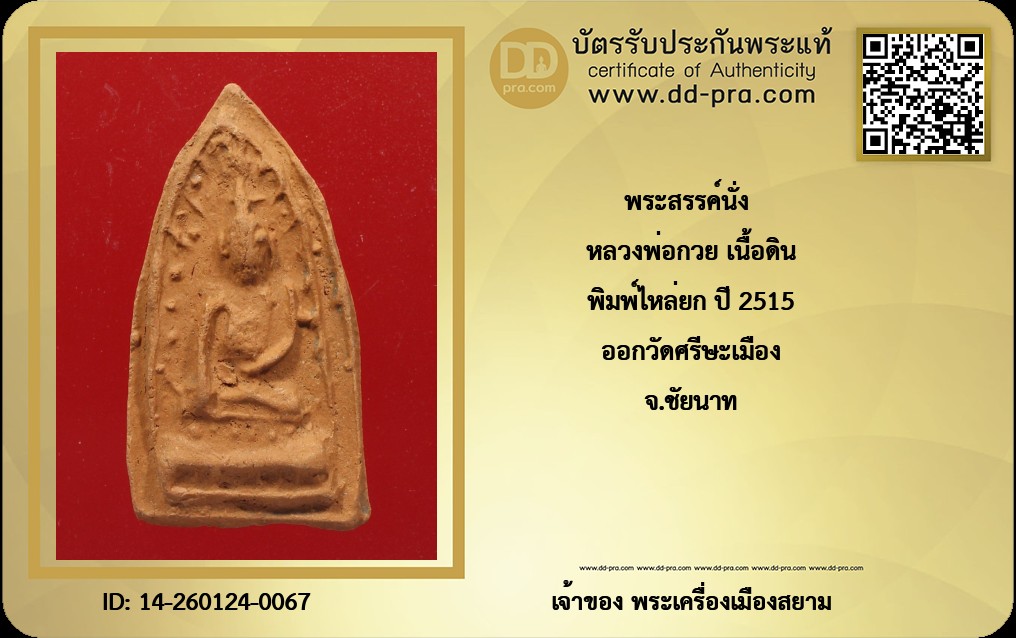 หลวงพ่อกวย เนื้อดิน พิมพ์ไหล่ยก ปี 2515 ออกวัดศรีษะเมือง จ.ชัยนาท