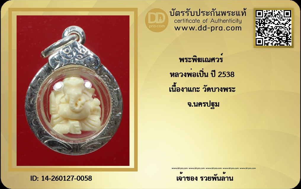 หลวงพ่อเปิ่น ปี 2538 เนื้องาแกะ วัดบางพระ จ.นครปฐม