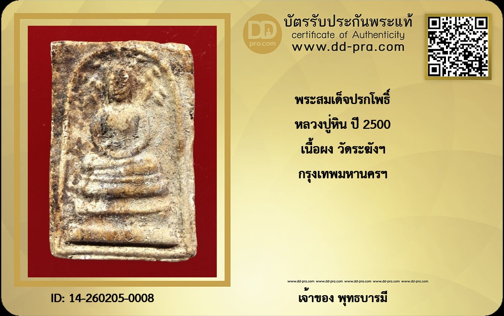 หลวงปู่หิน ปี 2500 เนื้อผง วัดระฆังฯ กรุงเทพมหานครฯ