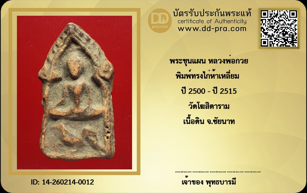 พิมพ์ทรงไก่ห้าเหลี่ยม ปี 2500 - ปี 2515 วัดโฆสิตาราม เนื้อดิน จ.ชัยนาท