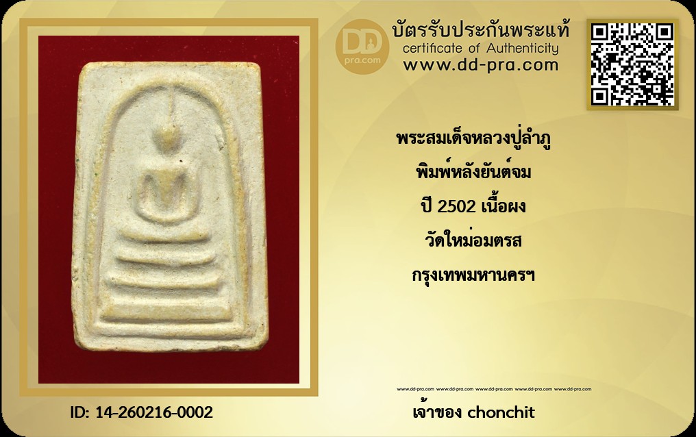 พิมพ์หลังยันต์จม ปี 2502 เนื้อผง วัดใหม่อมตรส กรุงเทพมหานครฯ