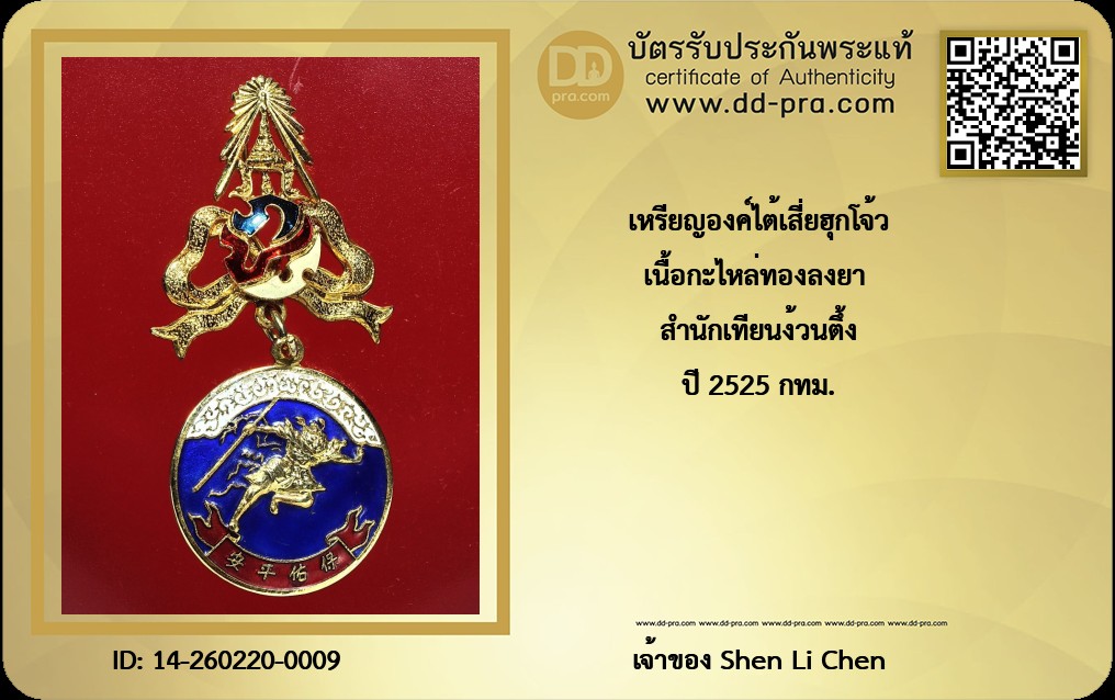 เนื้อกะไหล่ทองลงยา สำนักเทียนง้วนตึ้ง ปี 2525 กทม.