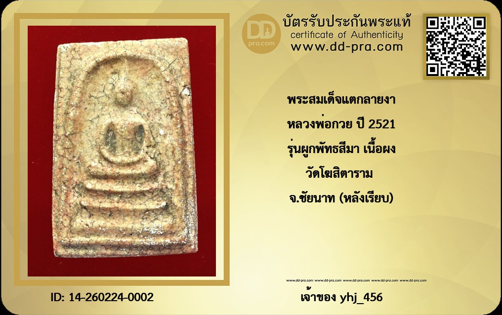 หลวงพ่อกวย ปี 2521 รุ่นผูกพัทธสีมา เนื้อผง วัดโฆสิตาราม จ.ชัยนาท (หลังเรียบ)