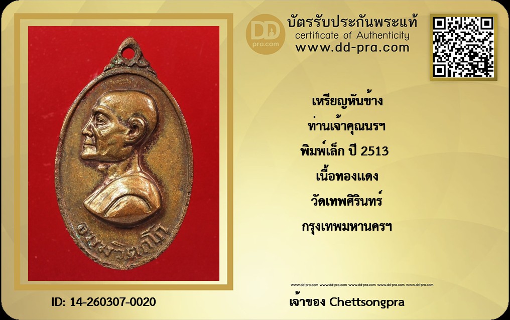 ท่านเจ้าคุณนรฯ พิมพ์เล็ก ปี 2513 เนื้อทองเเดง วัดเทพศิรินทร์