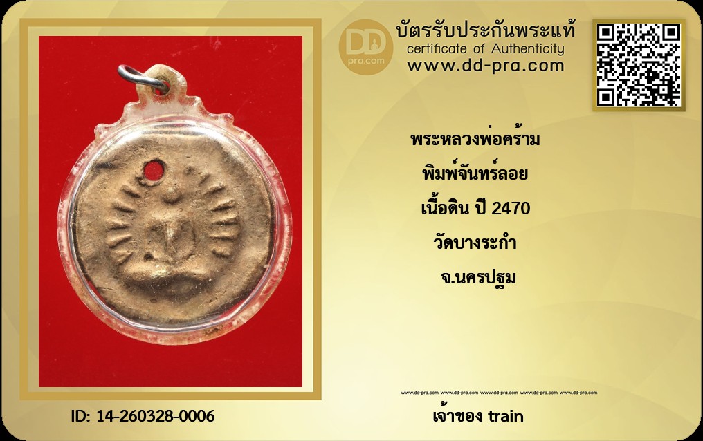 พิมพ์จันทร์ลอย เนื้อดิน ปี 2470 วัดบางระกำ จ.นครปฐม