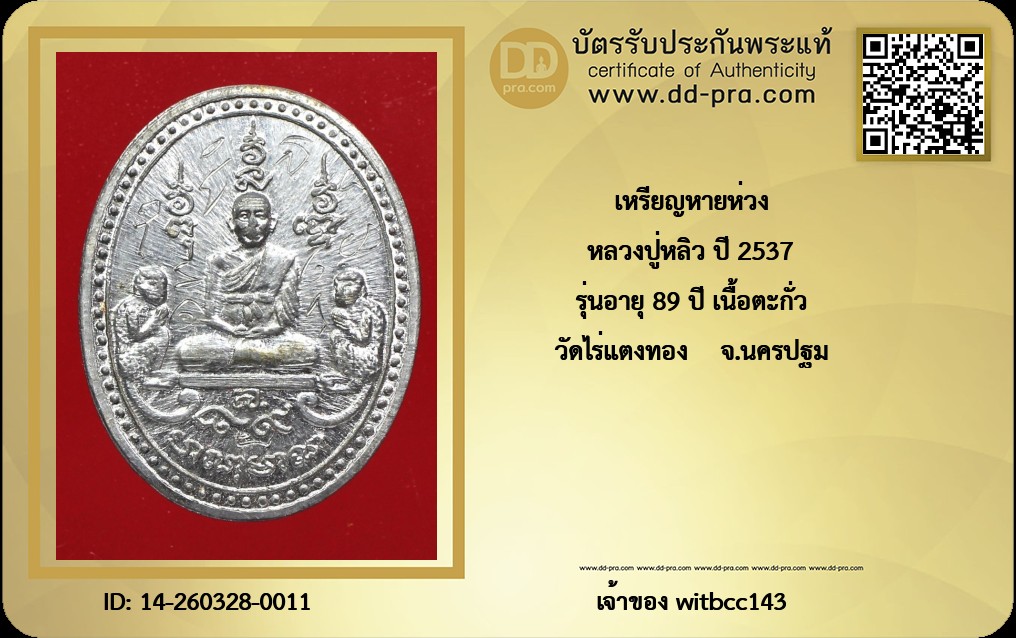 หลวงปู่หลิว ปี 2537 รุ่นอายุ 89 ปี เนื้อตะกั่ว วัดไร่แตงทอง จ.นครปฐม