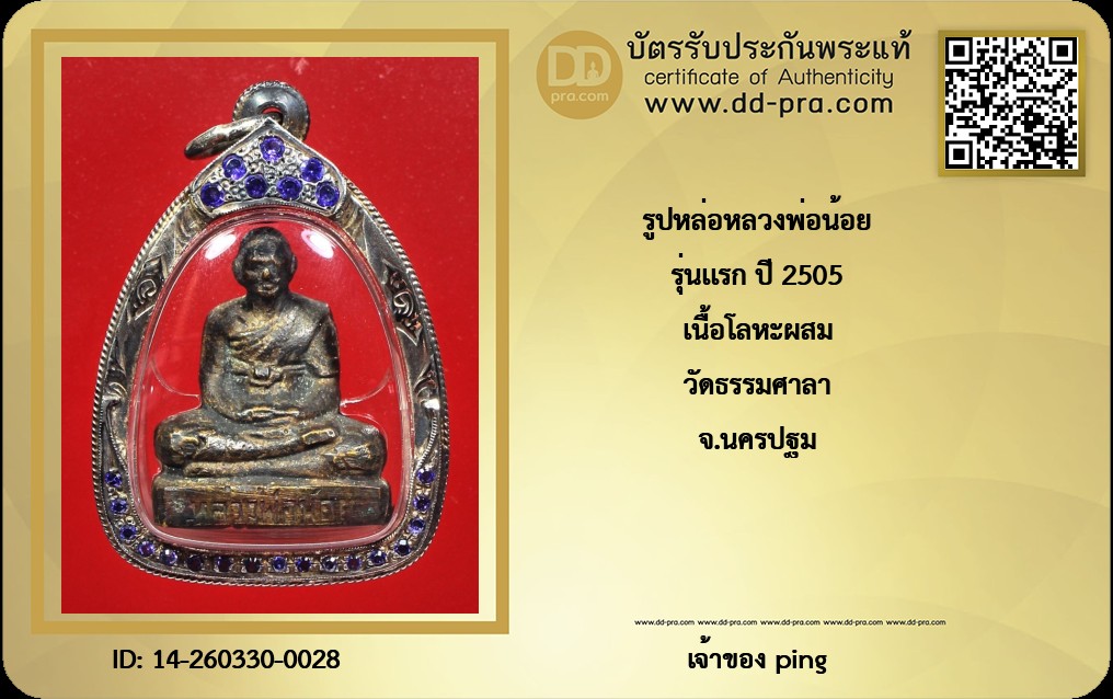 รุ่นเเรก ปี 2505 เนื้อโลหะผสม วัดธรรมศาลา จ.นครปฐม