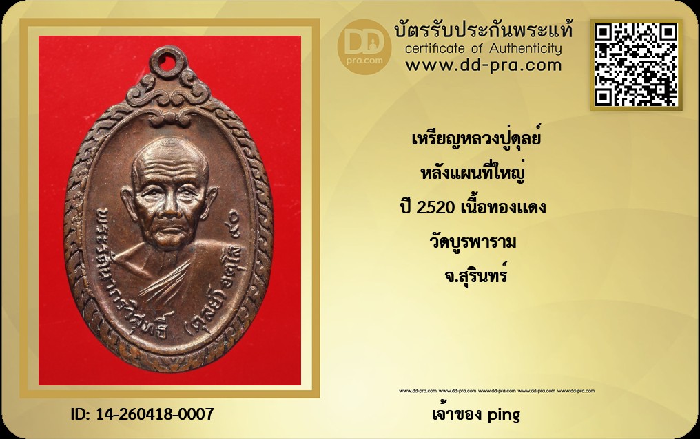 หลังแผนที่ใหญ่ ปี 2520 เนื้อทองเเดง วัดบูรพาราม จ.สุรินทร์