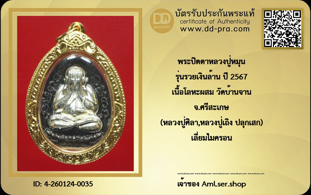 รุ่นรวยเงินล้าน ปี 2567 เนื้อโลหะผสม วัดบ้านจาน จ.ศรีสะเกษ (หลวงปู่ศิลา,หลวงปู่เถิง ปลุกเสก)