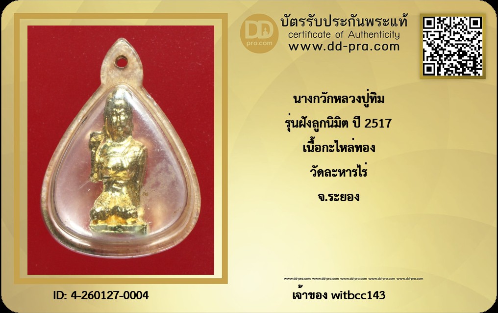 รุ่นฝังลูกนิมิต ปี 2517 เนื้อกะไหล่ทอง วัดละหารไร่ จ.ระยอง