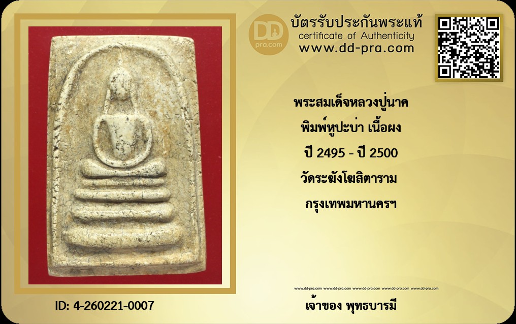 พิมพ์หูปะบ่า เนื้อผง ปี 2495 - ปี 2500 วัดระฆังโฆสิตาราม กรุงเทพมหานครฯ