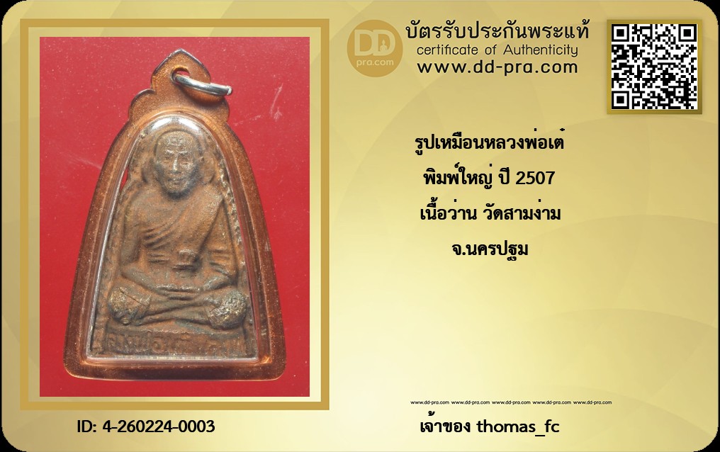พิมพ์ใหญ่ ปี 2507 เนื้อว่าน วัดสามง่าม จ.นครปฐม