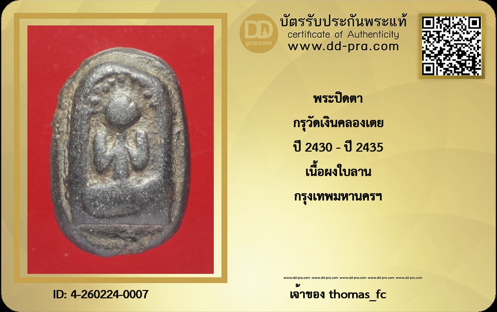 กรุวัดเงินคลองเตย ปี 2430 - ปี 2435 เนื้อผงใบลาน กรุงเทพมหานครฯ