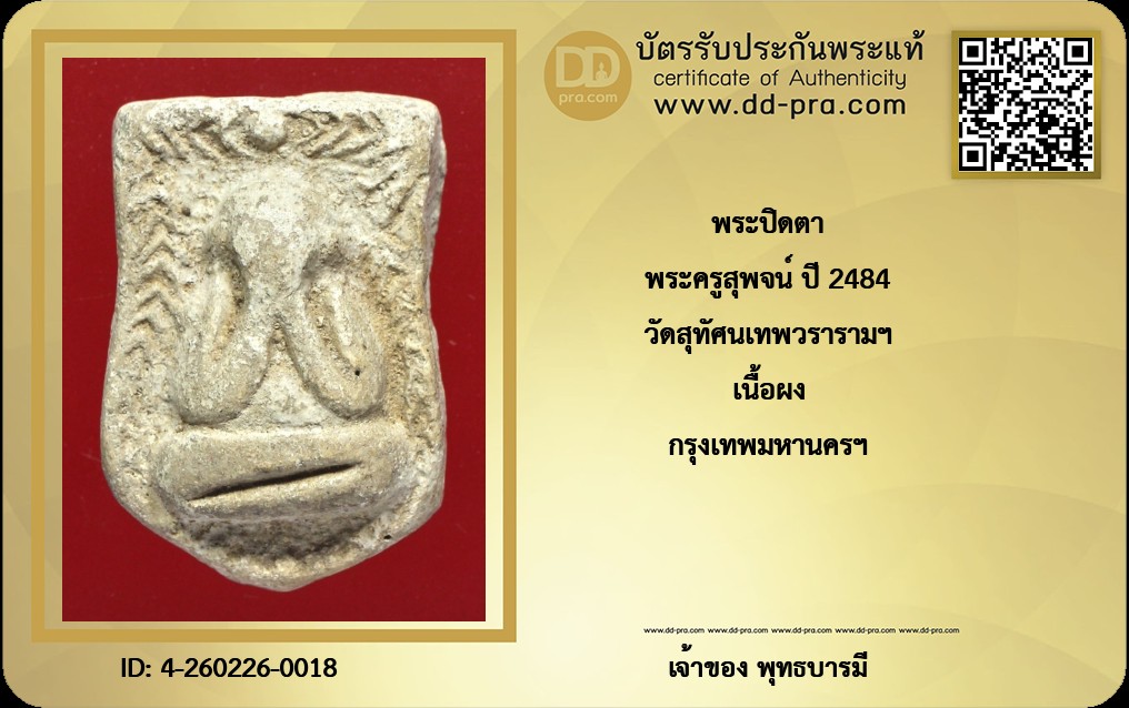 พระครูสุพจน์ ปี 2484 วัดสุทัศนเทพวรารามฯ เนื้อผง กรุงเทพมหานครฯ