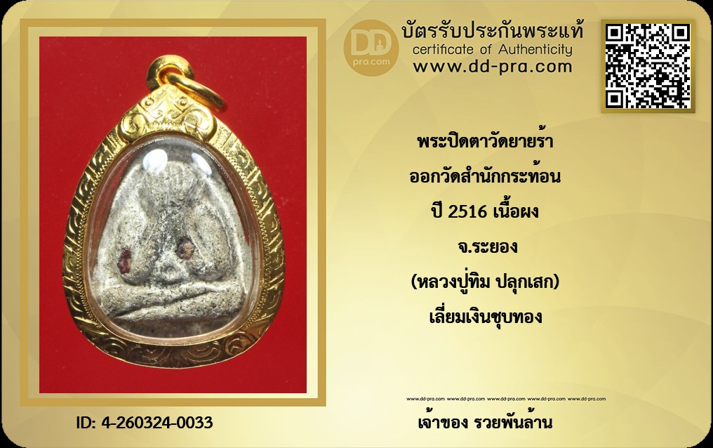 ออกวัดสำนักกระท้อน ปี 2516 เนื้อผง จ.ระยอง (หลวงปู่ทิม ปลุกเสก)