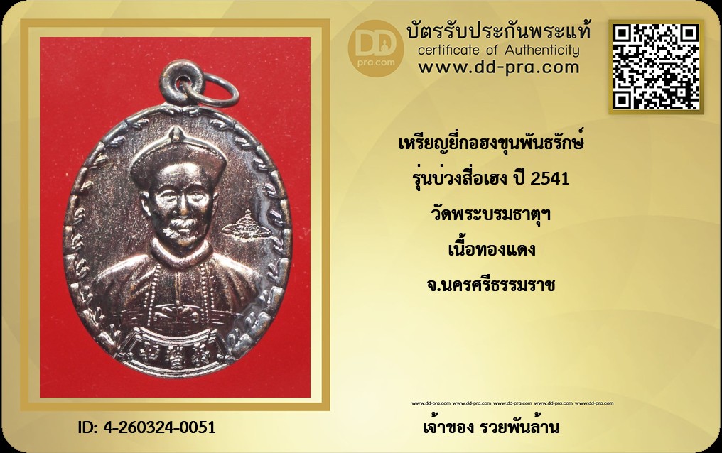 รุ่นบ่วงสื่อเฮง ปี 2541 วัดพระบรมธาตุฯ เนื้อทองแดง จ.นครศรีธรรมราช