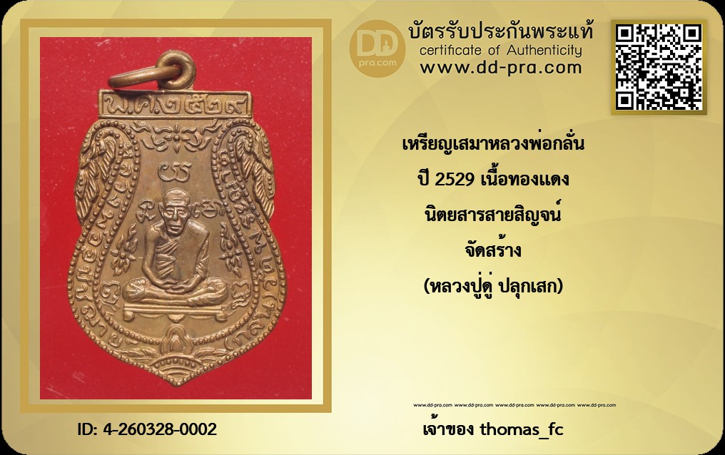 ปี 2529 เนื้อทองเเดง นิตยสารสายสิญจน์ จัดสร้าง (หลวงปู่ดู่ ปลุกเสก)