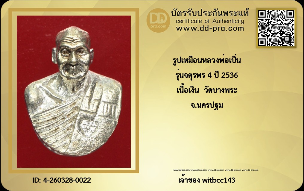 รุ่นจตุรพร 4 ปี 2536 เนื้อเงิน วัดบางพระ จ.นครปฐม
