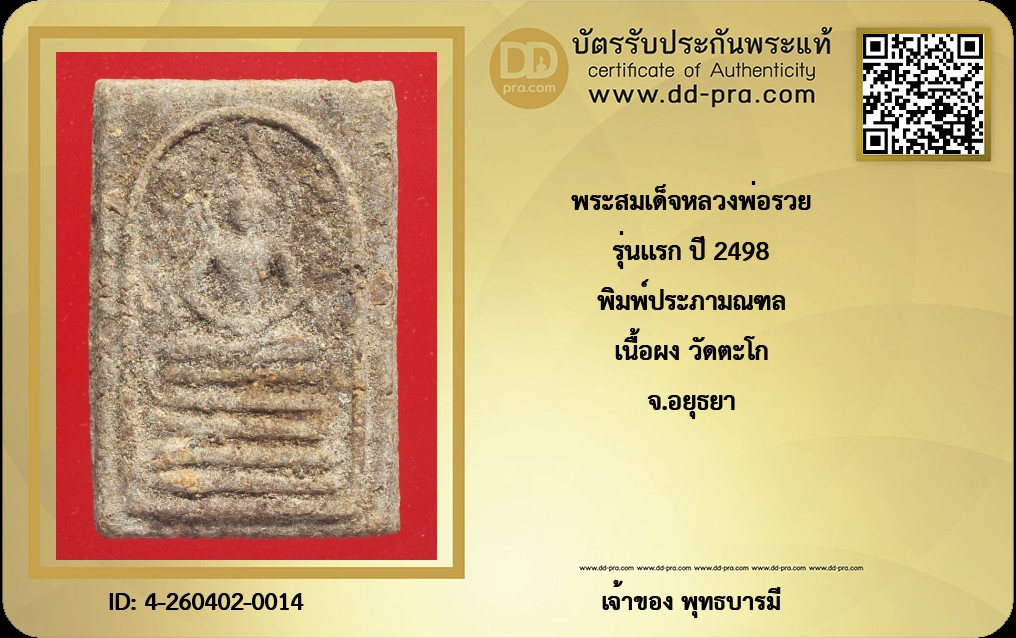 รุ่นเเรก ปี 2498 พิมพ์ประภามณฑล เนื้อผง วัดตะโก จ.อยุธยา
